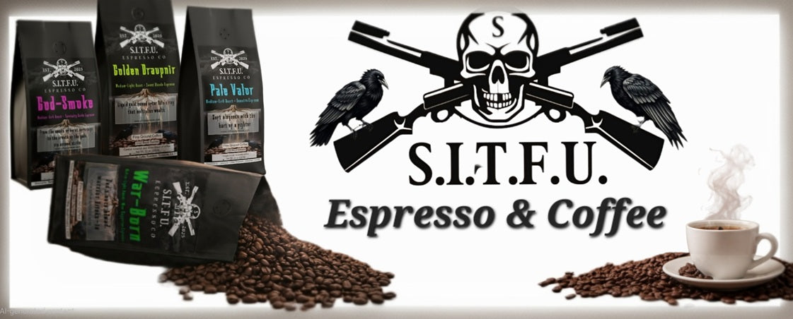 Whether your Blue-collar, White collar, Hustler, Military vet or Active service, Politician, Preacher, Grinder, Scholar, President, or King. If your truth, your need, is of great coffee and espresso, then you have found your home. Whatever your background, you have a place at our table, Welcome to S.I.T.F.U. Espresso Co "Suck It The F*ck Up!" Ignore override and push forward.!.